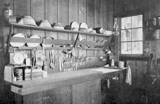 In the 1908 article for Country Life in America, Carlyle Ellis described these rustic buildings—which Easton enjoyed calling shacks—as "appropriately rugged, a veritable oasis in a desert of sage and sunflowers." Easton told Ellis the structural materials for his houses were also the finishes. In his view, "the trouble most people had when they tried to build a simple house at low cost arose from their subservience to studding, lath and plaster, paper and paint."