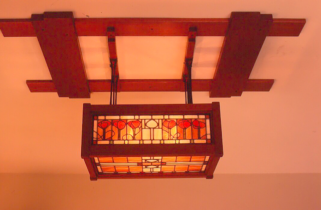 Arts & Crafts (1910) Parsons House by architects Arthur and Alfred Heineman was saved from demolition, moved in sections and restored on a new site several miles away. Boulder columns, chimney and base had to be rebuilt, but closely match their original appearance. Every surface was restored as the building slowly came back together. We added a new kitchen, family room, master bath, detached garage and studio.
